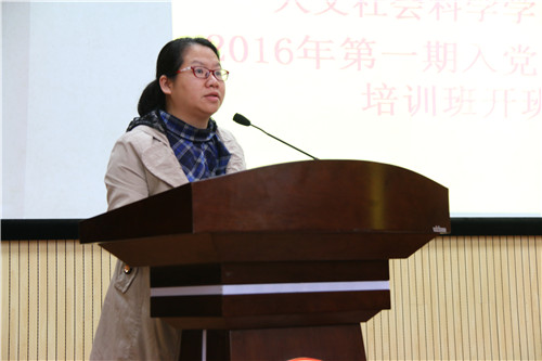 、人文社会科学学院、理学院2016年第一期入党积极分子联合培训班开班典礼在雁山校区图书馆报告厅顺利举行。外国语学院分党校副校长江玲老师、韩漫h