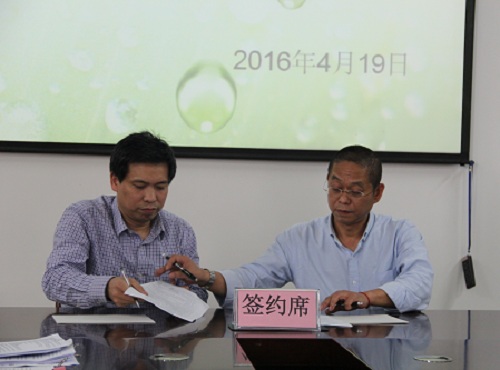 刘勇平副院长(右)与院长助理、实验中心主任李海云(左)签订2016年安全稳定工作责任状