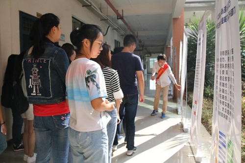 2016级新生在班助的带领下按班级顺序分批前往萃华楼,参观学院大学生创新创业成果展、专业实验室以及韩漫h