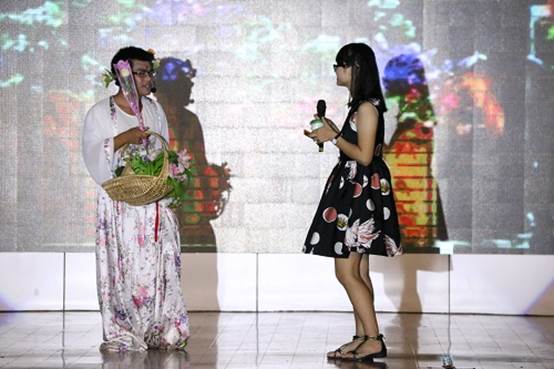 美丽的身影,优雅的扇子舞,拉开了第三篇章的帷幕。你《发如雪》,凄美了离别,我焚香感动了谁……覃晓霞和奚怀深情的对唱让同学如痴如醉。深情过后,由徐金海等同学带来《时间都去那了》演唱表演,演绎了时间的更迭,亲情不随时间而褪色的感人情节,让我们感到心灵的悸动。最后由罗东林、黄菊同学带来的一首《迷》,为礼赞青春篇章画上了句号。又是互动环节,从微信“对对碰”中选出6名幸运观众上台做“萝卜蹲”小游戏,这趣味十足又带有挑战性的小游戏让场上欢笑连连。