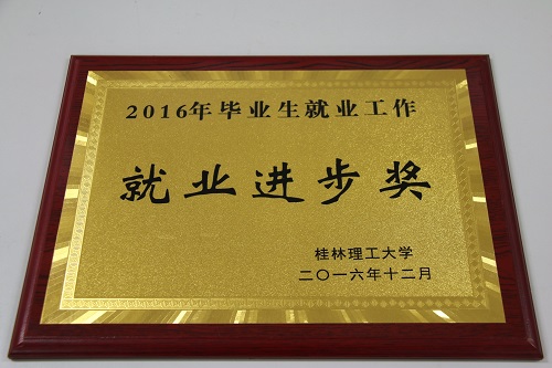 在2016年毕业生工作中表现突出,受到表彰。获得2016年毕业生就业工作“先进集体”及“就业进步奖”称号;刘勇平、何宗辉、李霞、吴雄志四位老师获得“先进个人”称号。