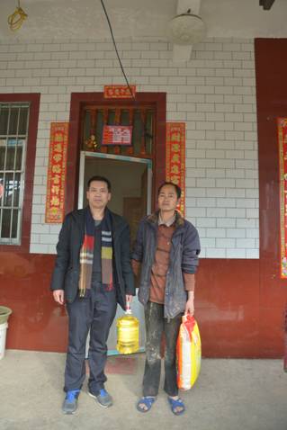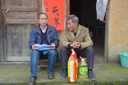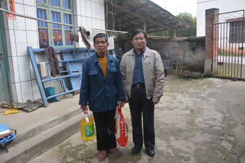 领导带着扶贫物品,分别深入6个结对帮扶户家中走访,送去油、米等生活物品,倾听贫困户的心声与诉求,和他们共同商量脱贫办法。