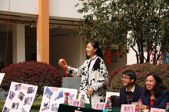 活动伊始,陶剑飞老师为活动致辞。她说道:壮族传统文化是壮族人民在长期的社会历史实践中而形成的,具有较强的稳定性、持久性、传承性和顽强的生命力的精神财富,“三月三”是我们广西壮族独特的民族传统文化节日,我们应该立足民族优秀传统文化,培育和弘扬社会主义核心价值观。同时向同学们提出了三点希望:一是希望广大同学要传承创新,充分认识“弘扬壮族传统文化,践行社会主义核心价值观”系列活动的重要意义;二是希望广大同学继承先贤,做好“文化传播使者”;三是希望广大同学要崇德重德,将社会主义核心价值观和民族文化传统落实到日常学习生活中去。