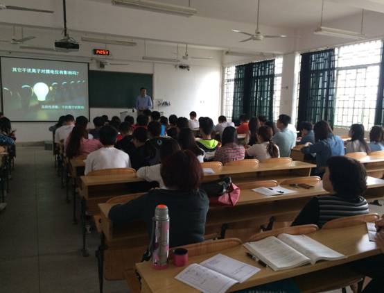 公开课上,潘宏程教授灵活运用启发式、讨论式、问题式、探究式、参与式等教学方法,有机融合现代信息技术和教育教学手段,推广先进的课堂教学理念、方法及技巧,将教学改革成果落实到课堂教学。课堂上,通过拓宽教学资源,引入程序,生动地向学生传达了离子选择电极的结构和作用机理。此外,针对一些重要的知识点,采用让学生自己查资料,并进行演讲的方式向大家传达,大大加深印象,也调高了学生的主观能动性。结课后,参与听课的老师对授课过程中的课堂教学设计、课堂管理、教学方法中产生的困惑和心得体会进行了交流与讨论,使青年教师受益良多。