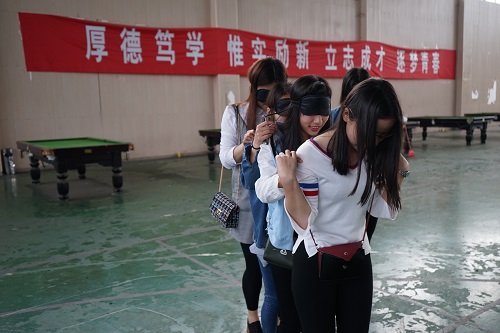 “爬雪山”蒙眼过障碍环节