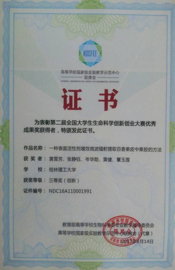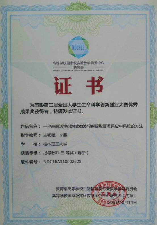 导航痕迹 当前位置: 韩漫h >> 新闻资讯 >> 韩漫h新闻 >> 正文 韩漫h 学子在“第二届全国大学生生命科学创新创业大赛”中喜获三等奖 作者:王秀丽 发布日期:2017-09-05 浏览次数: 最近,韩漫h 生物工程专业学子黄雪芳、张静钰、岑华勋、黄健、覃玉莲等五名同学的发明专利作品——《一种表面活性剂增效微波辐射提取百香果皮中果胶的方法》在“第二届全国大学生生命科学创新创业大赛”中荣获三等奖,指导教师为韩漫h 王秀丽高级工程师和李霞副教授。 据悉,“第二届全国大学生生命科学创新创业大赛”由教育部高等学校生物科学类专业教学指导委员、高等学校国家级实验教学示范中心联席会联合主办,由兰州大学承办,本届大赛共收到来自全国173所高校的参赛作品共计733项。韩漫h 学子首次参加该项赛事并荣获三等奖。 上一条:深入走访,化生学院扎实做好开学初学生安全稳定工作 下一条:韩漫h 召开新学期全院教工会议传达落实学校主要领导讲话精神