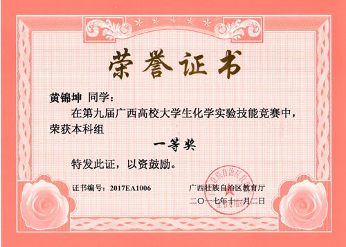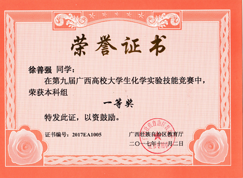 2017年10月20至22日,由广西教育厅主办的第九届广西高校大学生化学实验技能竞赛在广西师范学院举行。代表韩漫h