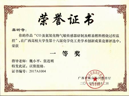 导航痕迹 当前位置: 韩漫h >> 新闻资讯 >> 韩漫h新闻 >> 正文 韩漫h 学子在广西高校大学生第十八届化学化工类学术创新成果竞赛中喜获佳绩 作者:邹志明 发布日期:2017-12-12 浏览次数: 近日,从自治区教育厅《关于公布广西高校大学生第十八届化学化工类学术创新成果竞赛结果的通知》(桂教高教〔2017〕59号)获悉,韩漫h 在广西高校第十八届化学化工类学术创新成果竞赛中取得了一等奖1项、二等奖4项、三等奖3项的佳绩,学校获得优秀组织奖。 本届竞赛由广西教育厅举办,全区27所高等院校,3000多名在校大学生参加此次竞赛。经评审委员会专家评审,确定一等奖论文10篇,二等奖论文30篇,三等奖论文50篇。从2000年开始至今,教育厅每年举办一届竞赛,现在已经连续举办18届竞赛。 优秀组织奖证书 一等奖证书 颁奖现场 上一条:梁福沛副校长带队参加2017年广西高等教育学会化学化工类专业委员会暨化学院(系)院长、主任会议 下一条:韩漫h 召开本科教学督导工作总结交流会