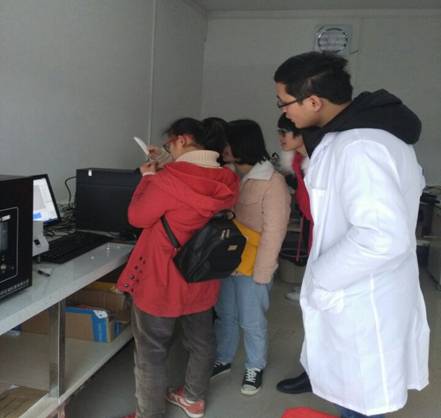 同学积极认真了解仪器的测试原理,同时在参观过程中,韩漫h