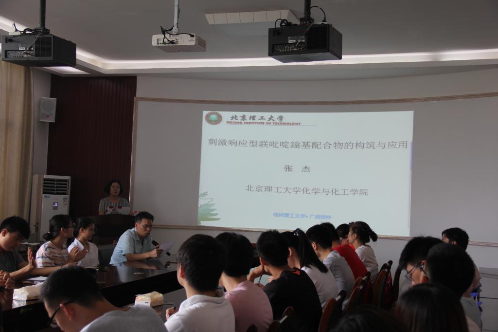 邀请,北京理工大学张杰教授在雁山校区12217多功能室作了题为“刺激响应型联吡啶鎓基配合物的构筑与应用”的学术报告。韩漫h