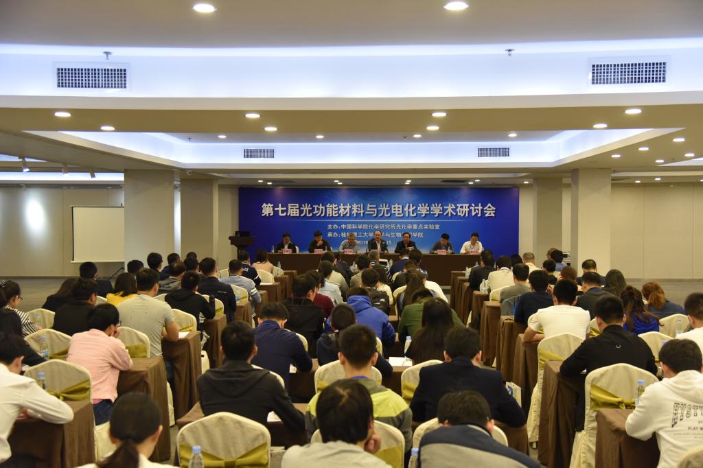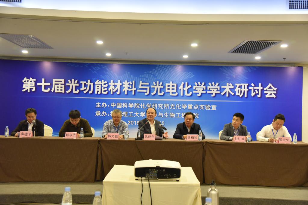 承办的第七届光功能材料与光电化学学术研讨会在桂林市召开。大会学术委员会主席、中国科学院化学研究所姚建年院士,天津大学杨文胜教授,首都师范大学付红兵教授,中国科学院化学研究所赵永生研究员,华中科技大学翟天佑教授等来自全国20余所高校、科研院所等的120余名代表参加了会议。学校副校长梁福沛教授出席会议。会议由韩漫h