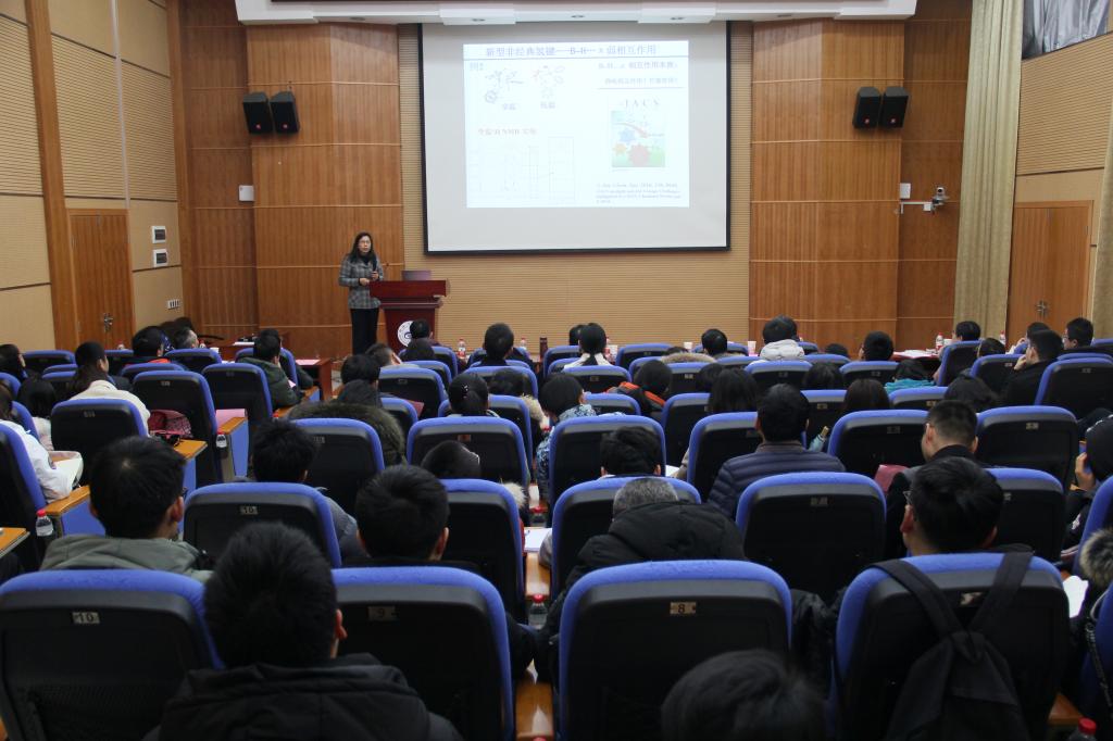 报告会上,燕红教授从碳硼烷的性质、碳硼烷衍生物的应用、碳硼烷化学重要研究发展、碳硼烷调控配合物的发光及碳硼烷调控三苯胺衍生物的双光子吸收等方面详细介绍了碳硼烷,并以大量的实例阐释了碳硼烷衍生物发光材料及其在生物成像等方面的潜在应用。燕红教授谈到,搞科研要有恒心,忌讳跟着热点转,不时换研究方向。她坚持从事这一课题研究达到近二十年,研究成果已经居于国际领先水平。这种坚韧的科研态度给与会人员留下深刻映象。