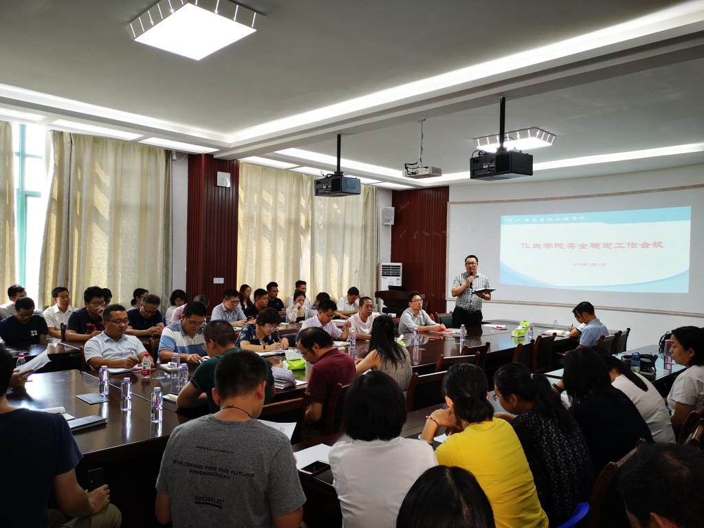 在雁山校区12217多功能室召开安全稳定工作会议,学院全体教职工参加了会议;9月30日,学院召开了领导班子会议,在家的领导参加了会议。这些会议传达了学校新中国成立70周年庆祝活动期间学校安全稳定工作电视电话会议、全校处级党员领导干部会议、全区学校安全稳定工作电视电话会议精神,对学院的安全稳定工作进行了详细布置。会议要求,全院师生特别是领导干部要空前重视国庆节前后的安全稳定工作,要将保持高度警惕,牢固树立安全稳定高于一切的思想,层层压实安全稳定责任,加强问题隐患排查整治,齐心协力构筑学院安全防线,为伟大祖国庆生营造良好氛围贡献力量。