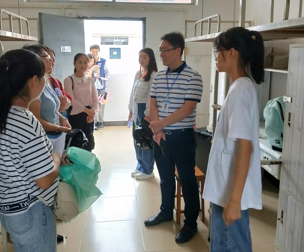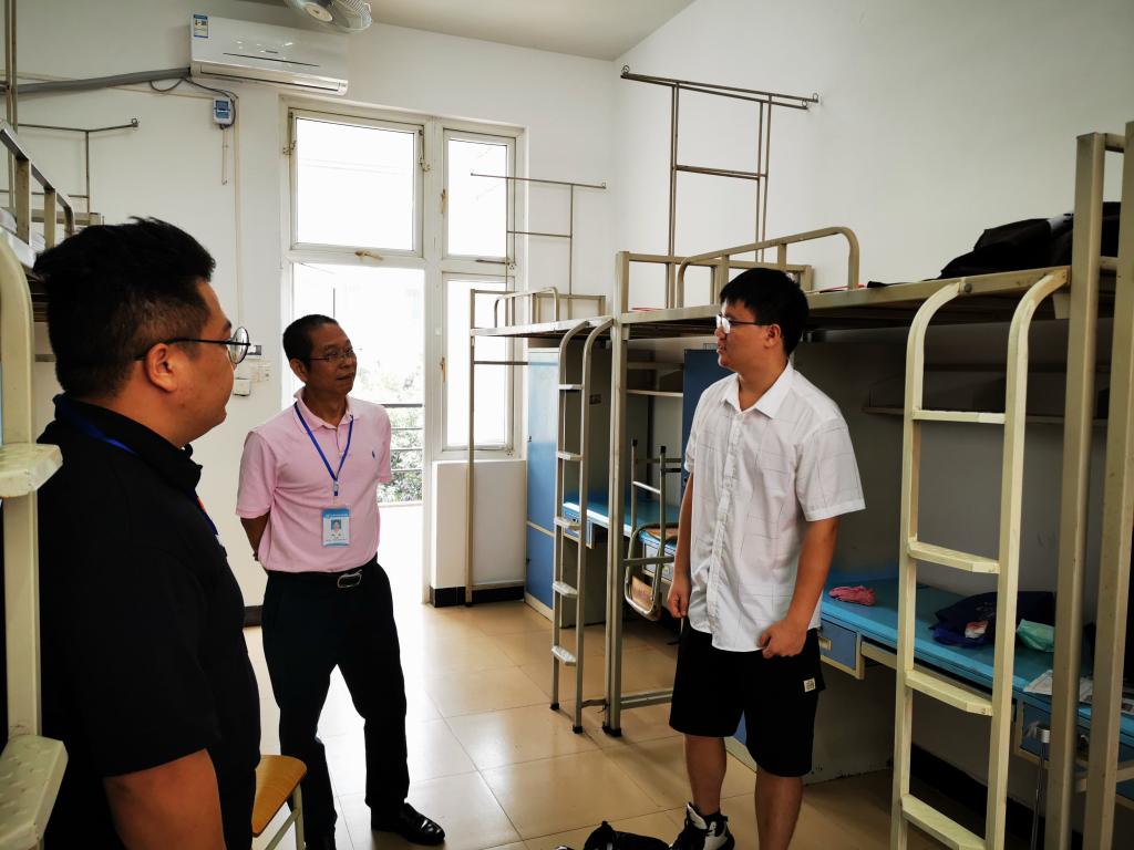 11日下午四点,学院迎新工作正式启动,学院迎新工作小组人员提前布置迎新场地,备好迎新物资,按照防疫要求做好新生报到的准备工作,确保提前到校的新生可以入住宿舍。12日上午九点,党委书记梁军、副院长刘勇平分别带队全体新生班主任,走访新生男女宿舍,第一时间了解新生们的基本情况和宿舍条件,叮嘱新生要认真学习,养成良好的生活习惯,有困难及时向学院老师反馈。