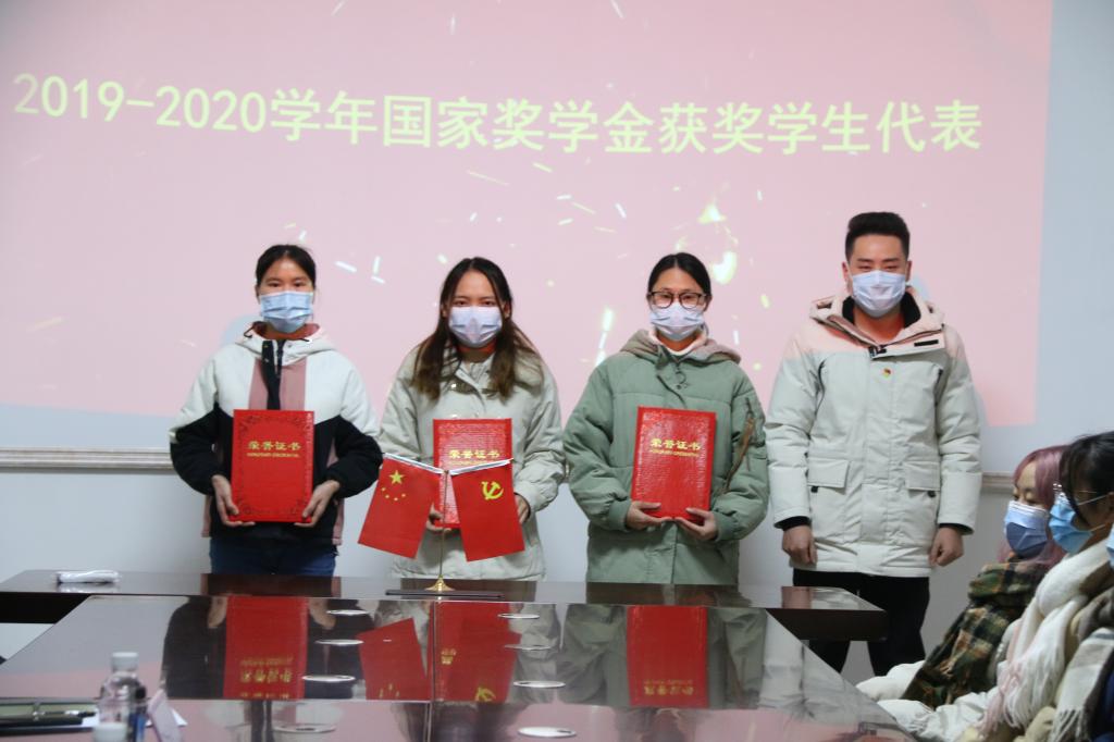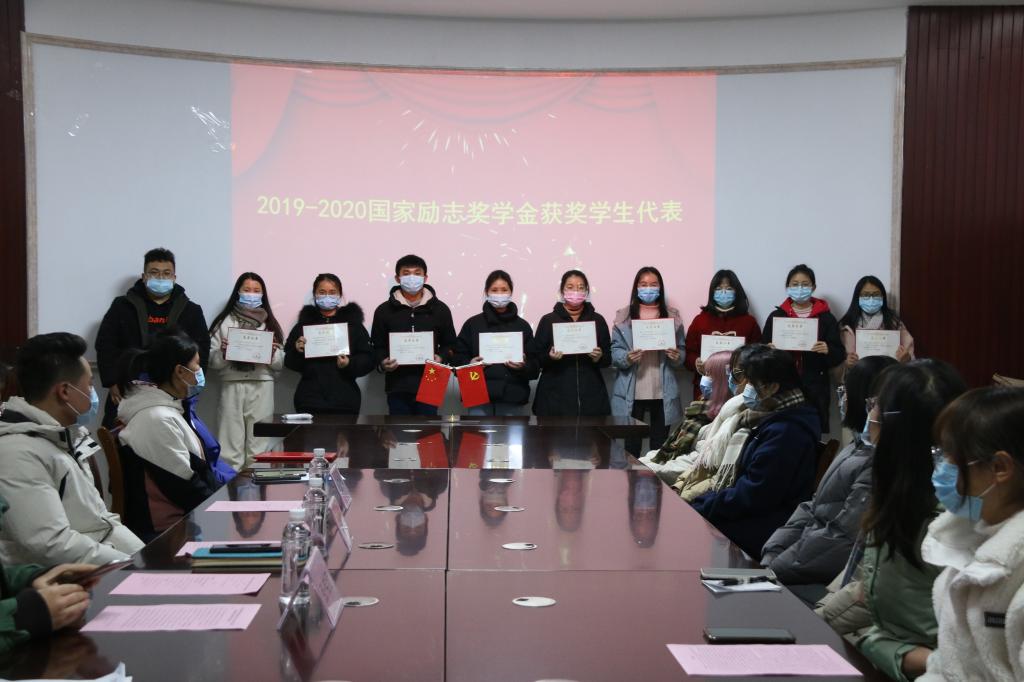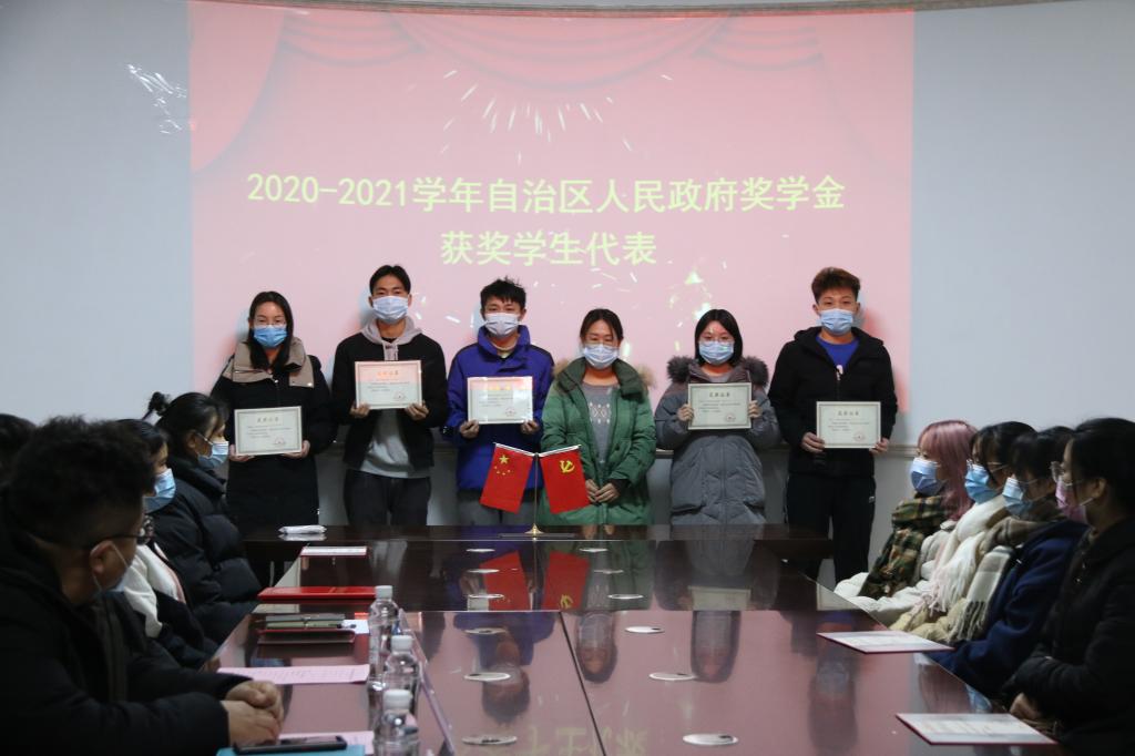随后,张伟颀老师宣读了表彰决定,与会老师向2019-2020学年度国家奖学金、国家励志奖学金、2020-2021学年度自治区人民政府奖学金、2019-2020学年度韩漫h