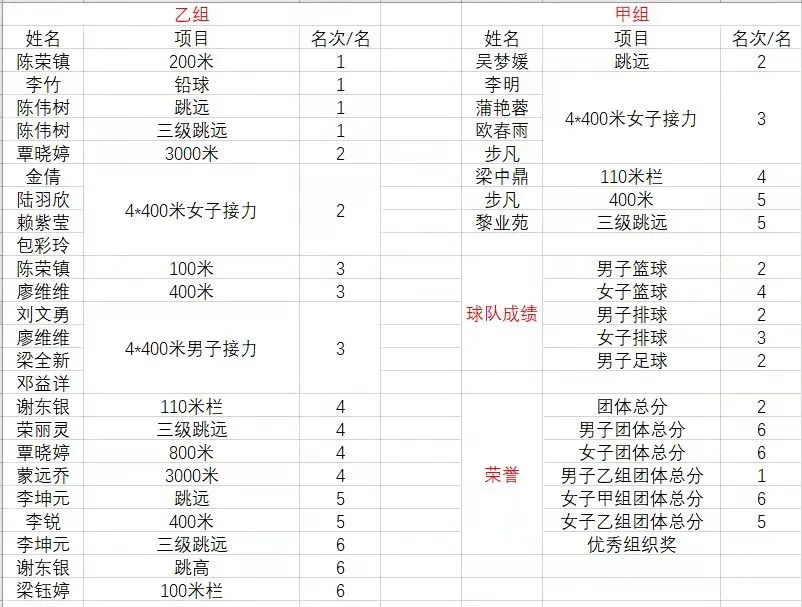 比赛中,运动员们充分发扬奋力拼搏的精神品质,在赛场上超越自我、追求卓越,在长短跑、接力赛、跳高、跳远、铅球等项目中一展风采。最终取得“男子乙组团体第一名”、“女子乙组团体总分第五名”、“女子团体第六名”等成绩,并以总成绩206分获得“团体总分第二名”和“优秀组织奖”,彰显了化生学子的青春风采,用实力续写了校运会的华章。