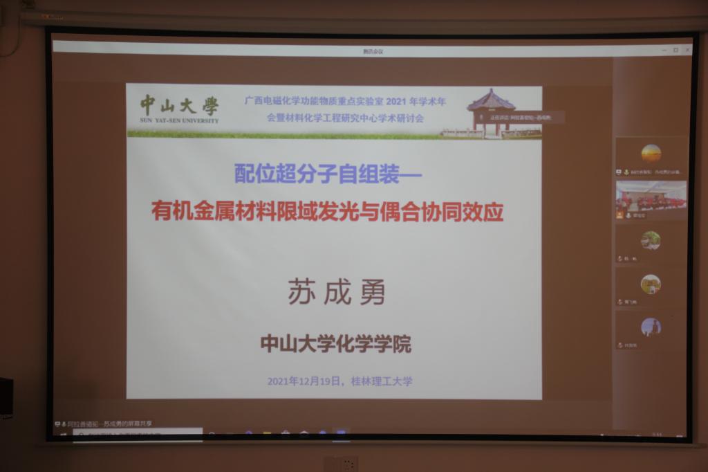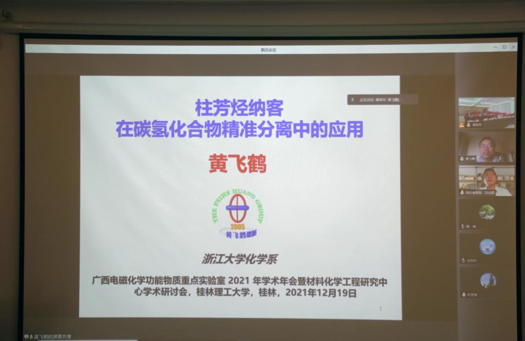 在屏风校区科技园众创中心学术报告厅举办广西电磁化学功能物质重点实验室2021年学术年会暨材料化学工程研究中心学术研讨会。学校副校长、广西电磁化学功能物质重点实验室主任梁福沛教授出席并在开幕式上致辞。会议邀请了浙江大学黄飞鹤教授、中山大学苏成勇教授、华东理工大学教授/浙江工业大学叶邦策教授、湖南大学王双印教授、华东理工大学/郑州大学韩一帆教授等专家在线上参会,韩漫h
