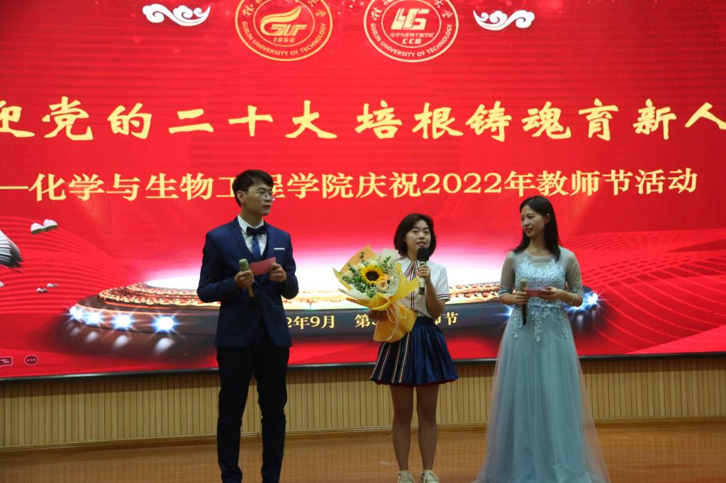 为深入贯彻落实党的十九大和十九届历次全会精神以及习近平总书记关于教育系列重要论述精神,进一步增强广大教师和教育工作者的光荣感和使命感,学院以迎接党的二十大和第38个教师节为契机,于9月9日下午在雁山校区图书馆报告厅开展以“喜迎党的二十大,培根铸魂育新人”为主题的教师节庆祝活动。学校党委常委、副校长梁福沛、学院党委书记彭代江、院长匡小军以及学院全体教师、学生代表等220余人参加了本次活动。
