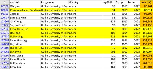 入选2022全球2%顶尖科学家“年度影响力”榜单名单
