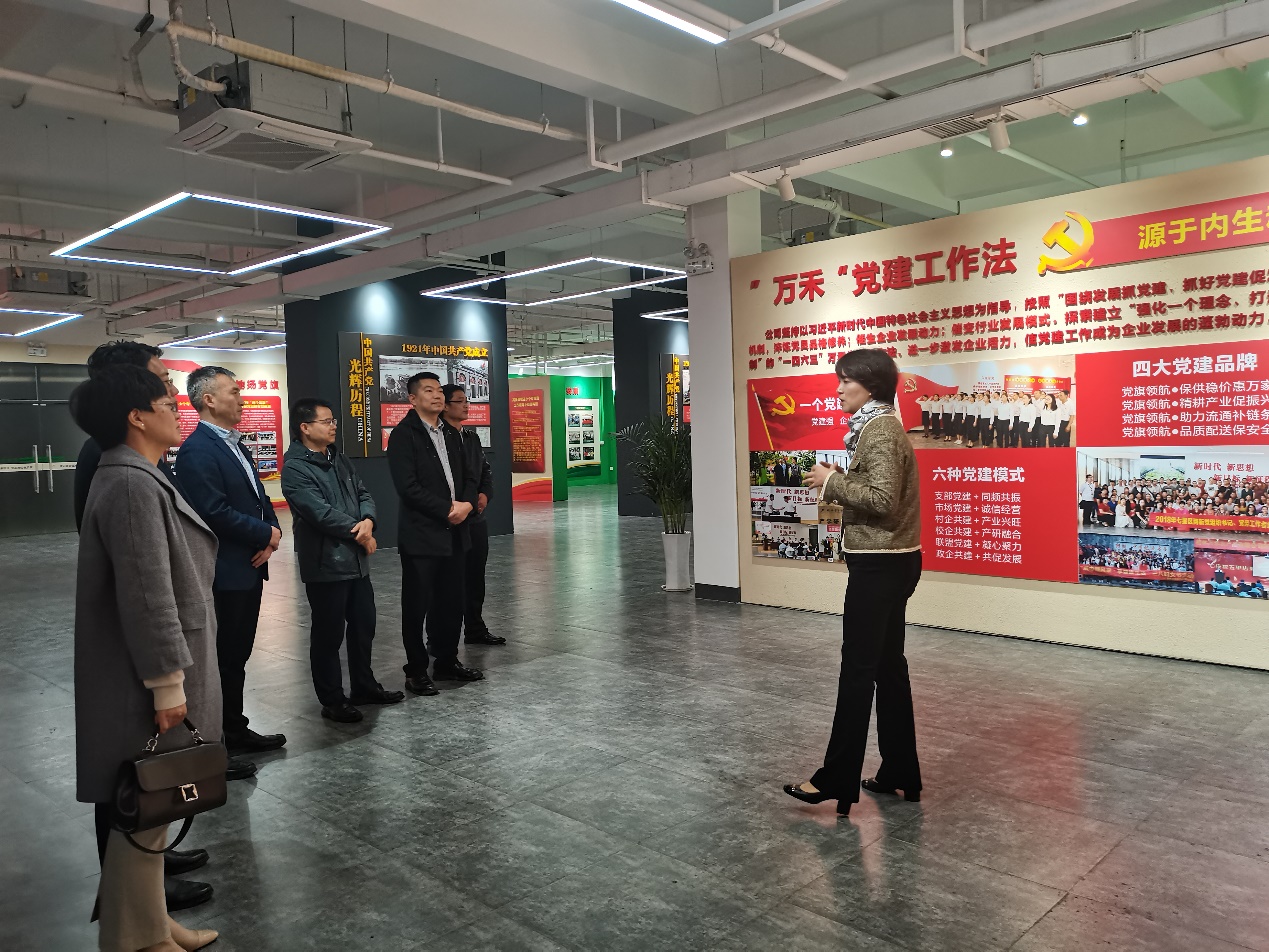 在万禾集团总经理、党总支书记崔萌佳的带领下,彭代江一行参观了万禾集团党建展览,听取了万禾集团有关党建情况介绍,感受到了党建工作在企业发展壮大过程中发挥的巨大作用。