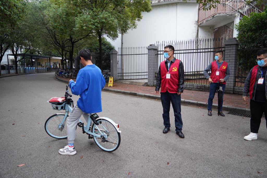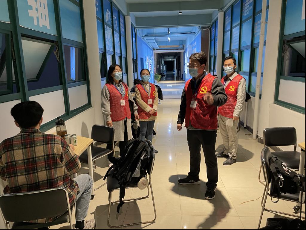 疫情就是命令,防控就是责任。党员志愿者身穿红色马甲,肩扛防控重任,尽职尽责地在学院办公楼、学生宿舍和食堂等重要场所开展疫情防控工作,确保广大师生在校内流动过程中规范佩戴口罩。教师党员志愿者以实际行动践行初心、担当使命,让党旗高高飘扬在校园疫情防控最前线。
