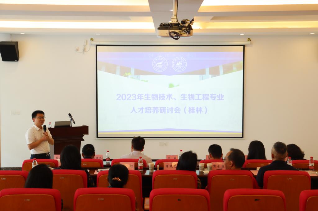 为加强生物技术、生物工程专业人才培养方面的交流,推动转变思想教育观念,促进创新人才培养,5月19日至21日,2023年生物技术、生物工程专业人才培养研讨会(桂林)在我校顺利举行。学校党委常委、副校长王玫出席开幕式并致辞。浙江大学姚善泾教授、上海交通大学陈峰教授、华中科技大学余龙江教授、湖北师范大学潘继承教授、湖南大学朱咏华教授、华南理工大学王菊芳教授、华南师范大学彭长连教授、大连工业大学陈晓艺教授等国内生物领域的知名专家学者,学校教务处、韩漫h