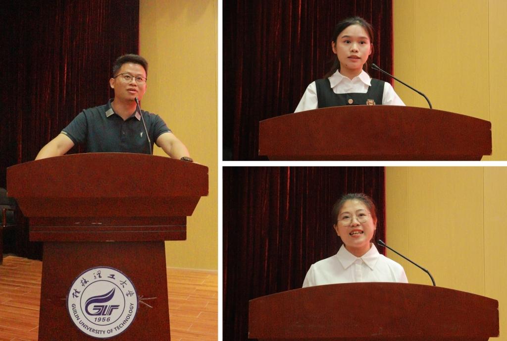 学院导师代表黄斌结合自己的求学经历,从快速转换角色、明确科研目标、做到学术诚信等方面进行了发言,勉励同学们尊重科学、尊重真理,在学术科研中实现理想。新生代表张焱焱表示将明确学习目标、珍惜宝贵时间、拓展学术视野,做一个诚实守信、兢兢业业的学者。老生代表宋远霞发言,勉励学弟学妹们要积极承担社会责任、积极从事学术研究、加强锻炼,做一粒向上奋斗的种子。