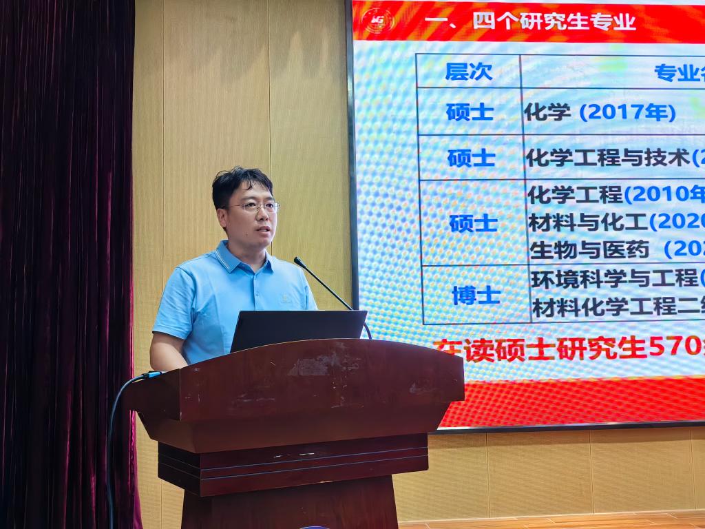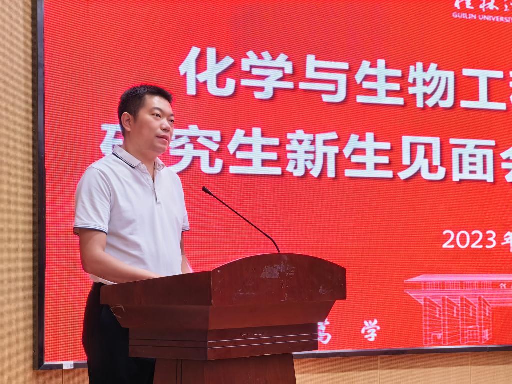 会上,学院党委书记彭代江代表学院对212名研究生新生的到来表示热烈的欢迎和亲切的问候。他以一名桂工师长的身份对同学们提出了三点希望:一是要心系祖国,树立远大人生理想;二是要诚信为学,坚守良好的学术道德;三是要勇于实践,坚持用创新思维服务社会。院长匡小军以“相约在化生,梦想与成功”为主题,从创新的角度畅谈化学与生物在人类社会发展中的至关重要作用。用一组组数据“数说化生”,介绍了学院发展历史、学科建设、平台建设情况;向同学们讲述了110余位教师接续奋斗的历程,为同学们传递“灯塔”的力量;聚焦科研团队、实验设备、学术活动等内容,介绍了学院科研力量;通过列举大量优秀在校生和校友的先进事迹,寄语同学们愿破茧成蝶,圆梦化生,争做新时代好青年。副院长刘勇平从研究生专业、导师互选、研究生培养、课程学习、论文撰写等方面,向同学们详细介绍了学院硕士研究生培养工作情况。