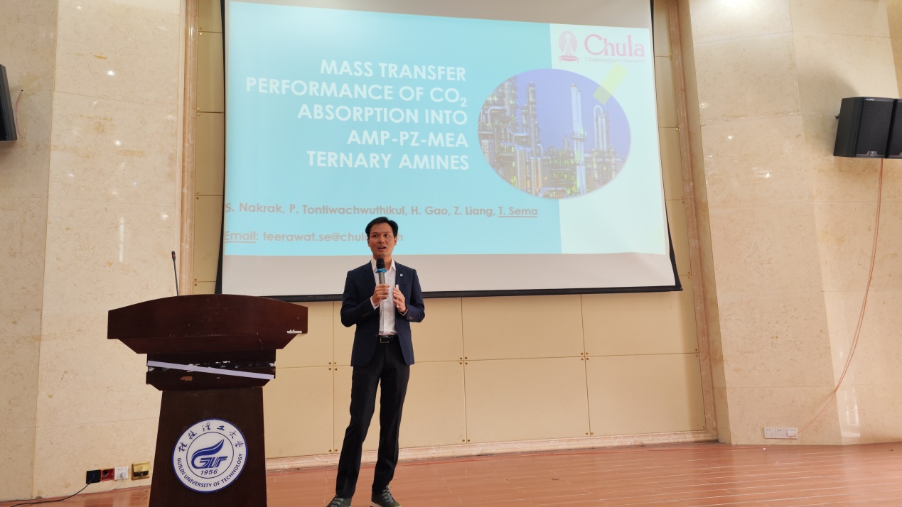 梁志武教授和Teerawat Sema博士分别作了题为“胺吸收法捕获二氧化碳的化工工程基础”和“Mass transfer performance of CO2 absorption into AMP-PZ-MEA ternary solvent”的学术报告,为韩漫h