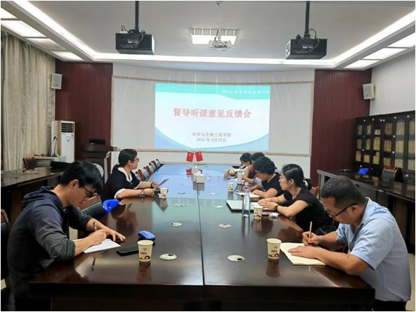 在雁山12217会议室召开了督导听课意见反馈会。学院副院长李霞、院长助理袁亚利、各教研室主任及副主任参加了会议。会议由李霞副院长主持。