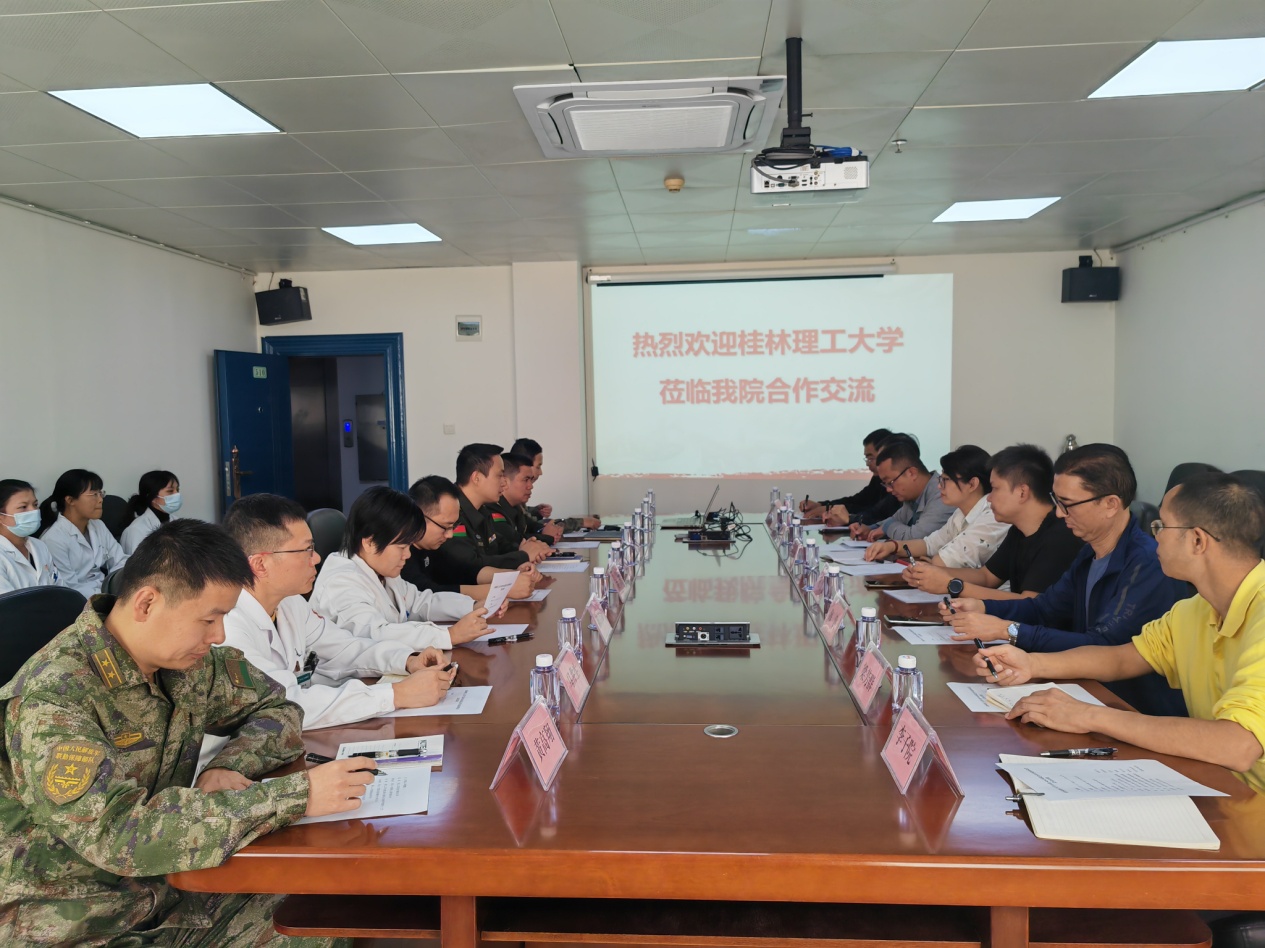 李霞副院长带队赴中国人民解放军联勤保障部队第九二四医院交流座谈,学院应用化学教研室主任张连明、生物工程教研室副主任汤兵、教师代表张云教授、海洪教授、李子院高级实验师随行。