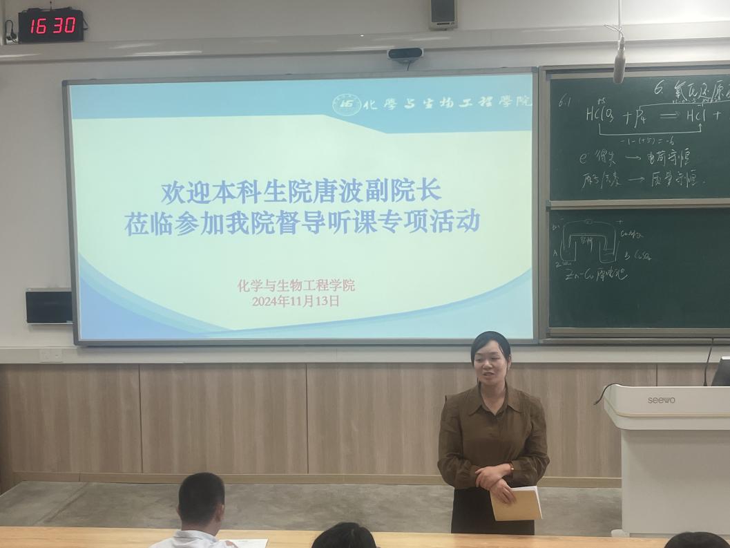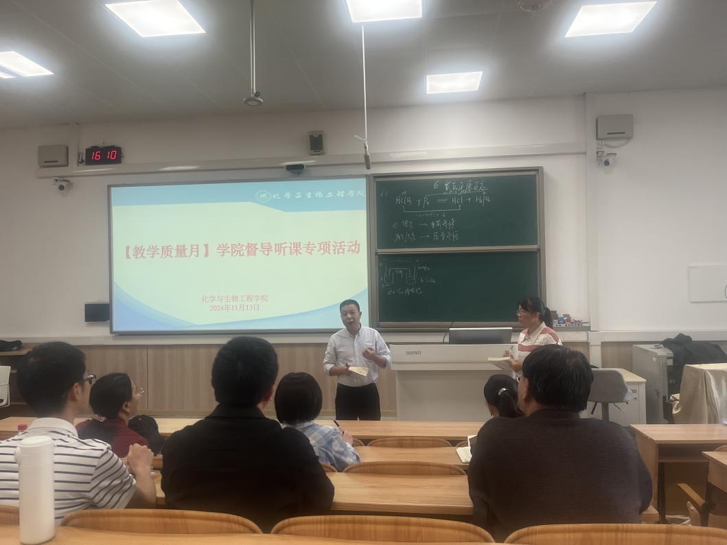 教师专业素养和教学能力,夯实教师驾驭课堂的教学基本功,整体提高教师的教育教学水平,根据学校“教学质量月”工作安排,2024年11月13日下午,化生学院教师教学发展分中心组织了随堂督导听课专项活动,活动在雁山校区7520教室进行,学院督导及新进教师参加了本次活动。