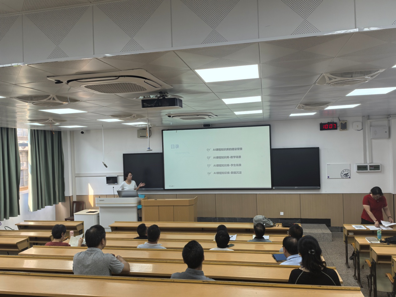 龙小燕老师作了题为《人工智能环境下的教育教学新模式和技术路径》的报告,通过将知识点与高阶性、创新性和时代性的教学资源相关联,有效促进学生的主动学习和深度学习,AI 课程打破传统师生结构,转向“师-生-机”三元交互的教学新范式,利用知识星球和人工智能技术实现个性化指导与反馈,助力提升创新型人才培养质量。现场老师积极交流,纷纷表示受益颇多。