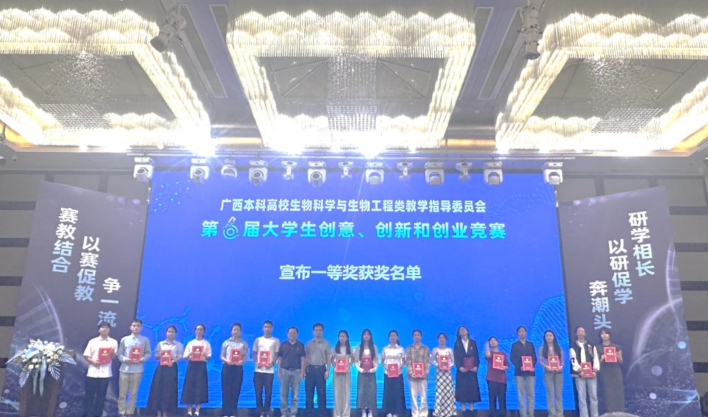 副院长李霞教授、广西本科高校生物科学与生物工程类教学指导委员会委员李海云教授和专任教师汤兵率生物工程专业师生参加了本次会议及竞赛。