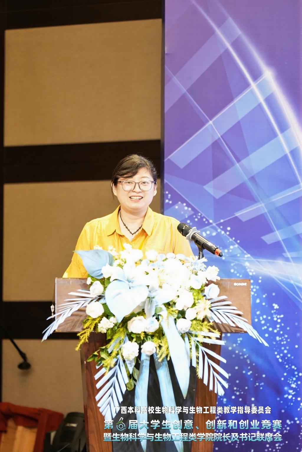 在联席会议上,包括教指委主任委员李有志教授在内的6位专家就“聚焦本科教学的生物科学与生物工程类院系建设、专业建设、课程思政建设”展开报告。李霞副院长在会上作了题为“生物工程创新人才培养改革与研究”的专题报告。本次会议在教指委的指导下给各成员单位搭建了一个交流与沟通的平台,对推进广西高校生物科学与生物工程类专业的发展具有重要意义。