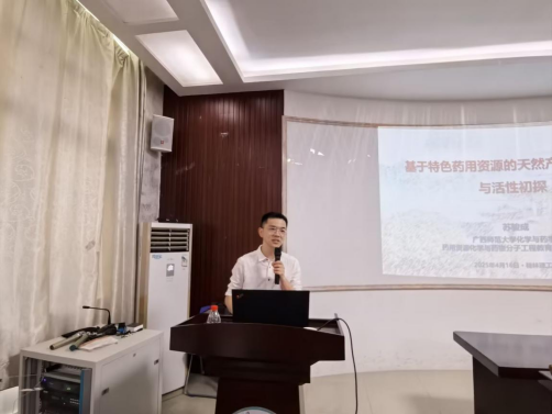邀请,广西师范大学苏骏成副教授莅临我校雁山校区,在萃华楼12217会议室为师生作了题为《基于特色药用资源的天然产物高效挖掘与活性初探》的专题学术报告。报告会由学院副院长孔翔飞教授主持,近百名师生到场聆听。