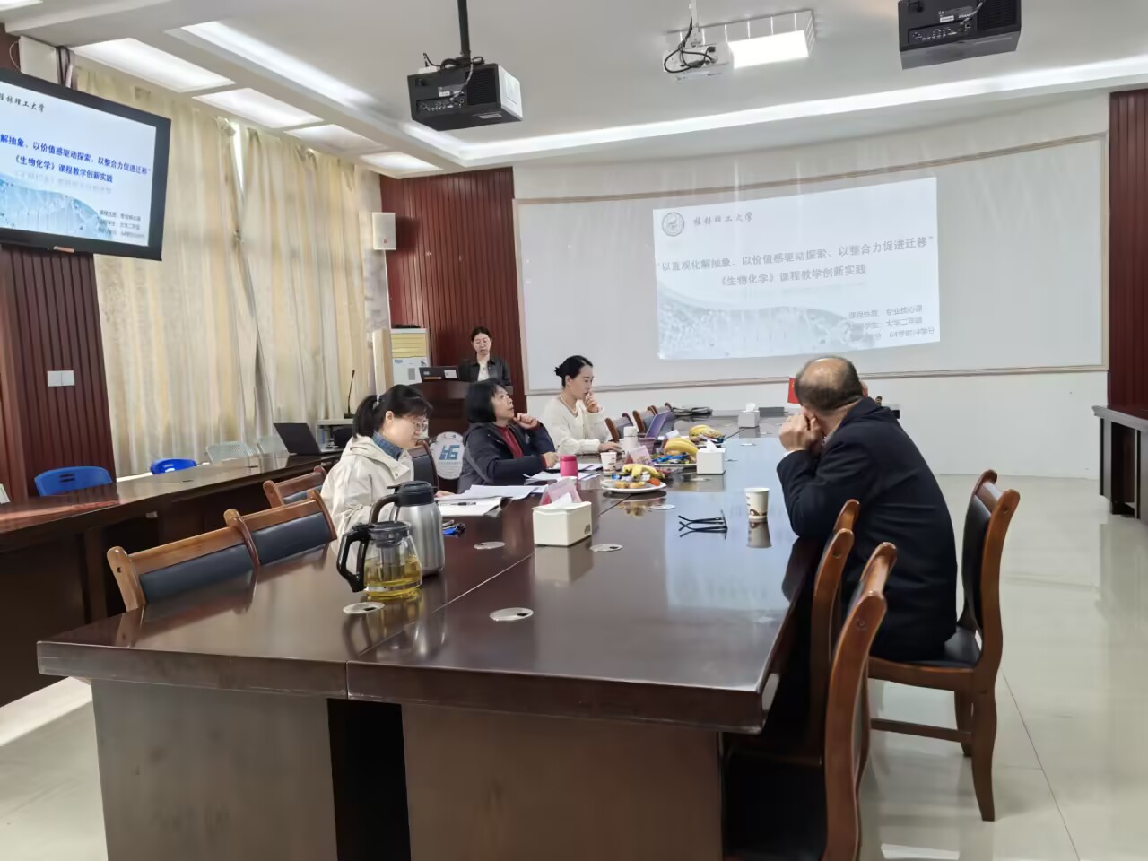 比赛设置基础课程赛道,采用“材料评审+现场汇报”的双重考核形式,全面考察教师的教学综合能力。生物工程教研室关媛副教授代表参赛,她紧扣专业特色,从教学内容重构、教学方法创新、现代技术融合三个维度进行系统设计,将生物化学知识内容与行业案例深度结合,同时巧妙融入课程思政元素,生动诠释了“以学生为中心”的教学理念,获得评委一致认可。