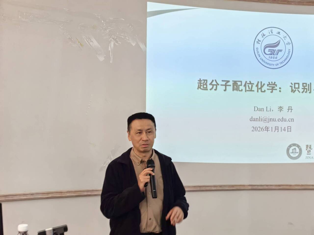 邀请,在我校雁山校区萃华楼217室作题为《超分子配位化学:识别与催化》的学术报告。报告会由梁福沛教授主持,近百名师生到场参加。
