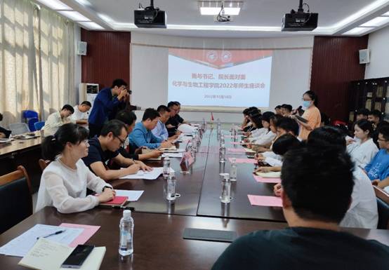 2022年师生座谈会。化生学院大一到大四各专业班级学生代表,研一到研三学生代表,学院书记彭代江,院长匡小军,学院其他领导,各教研室主任,学工各位辅导员参加了本次座谈会。应用化学教研室主任袁亚利参与了此次座谈会。