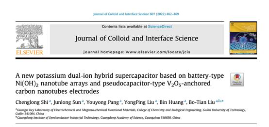 刘博天副研究员课题组开发了一种基于电池型正极和赝电容型负极的双离子杂化电容器,研究成果以题为A new potassium dual-ion hybrid supercapacitor based on battery-type Ni(OH)2 nanotube arrays and pseudocapacitor-type V2O5-anchored carbon nanotubes electrodes的论文被化学类知名期刊Journal of Colloid and Interface Science(IF=8.1)录用并正式发表。该项研究得到国家自然科学基金以及广西自然科学基金等多个项目的资助,韩漫h