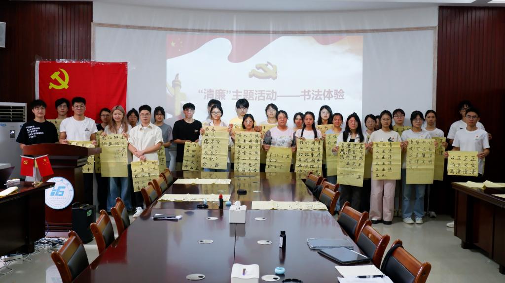 在党建办同学的带领下,大家进行了书法体验学习,让同学们在书写廉洁文字中感受传统书法的独特魅力。