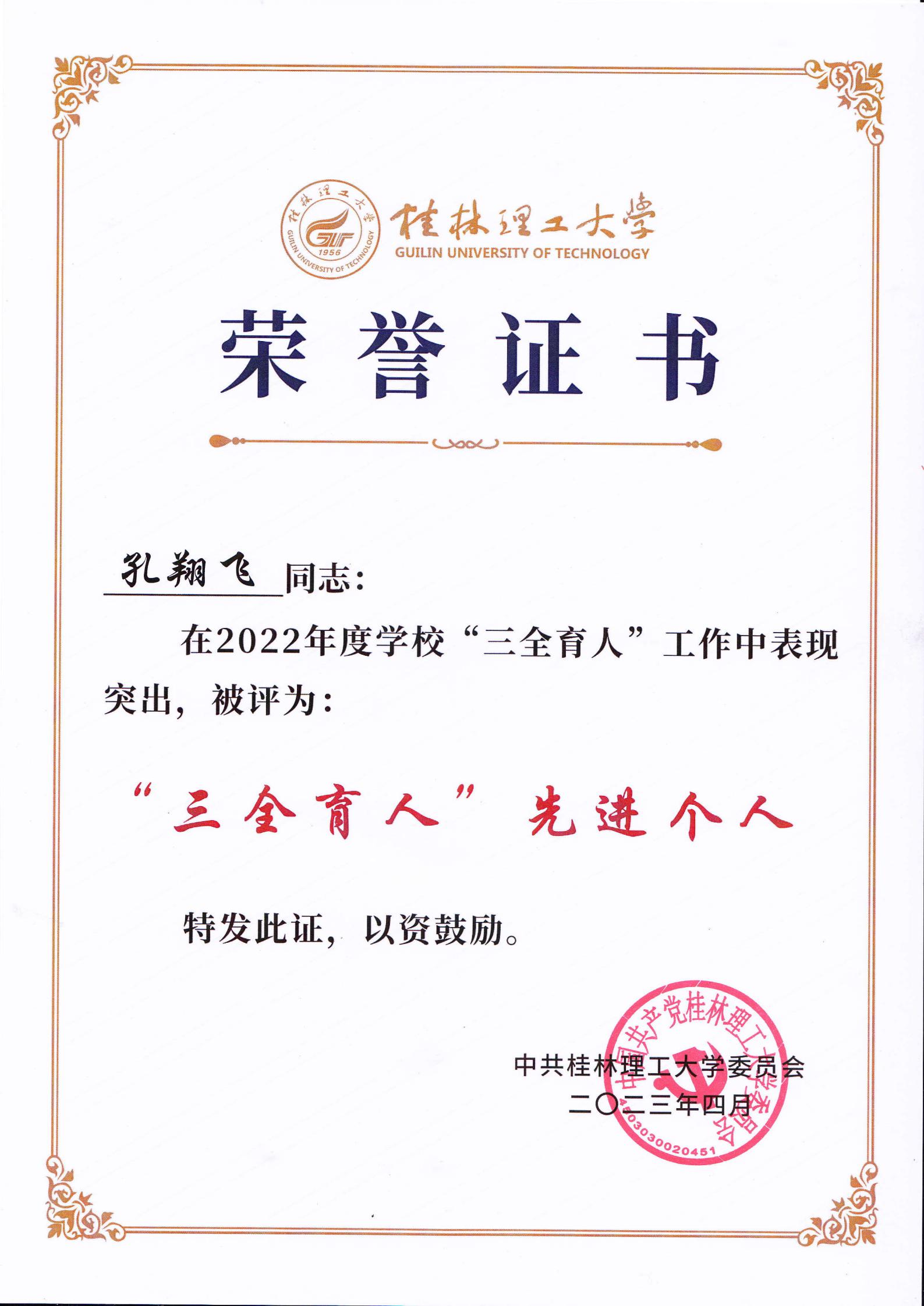 教师孔翔飞荣获“三全育人”先进个人荣誉称号,并在会上作经验交流发言。