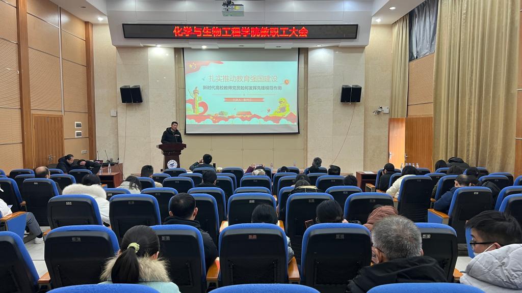 于图书馆报告厅开展“发挥模范作用 推动教育强国建设”主题党课。本次党课由学院党委书记彭代江同志主讲,全体教职工党员参加学习。