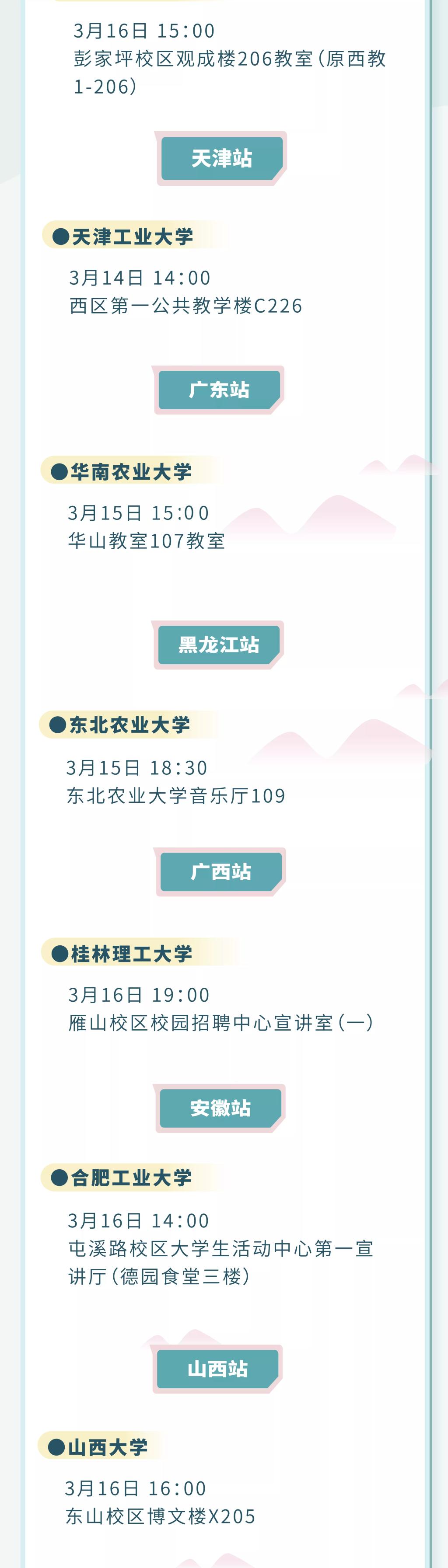 导航痕迹 当前位置: 韩漫h >> 招生就业 >> 招聘信息 >> 正文 【招聘信息】养生堂·农夫山泉·万泰生物专场招聘会 作者:朱皓 发布日期:2023-03-13 浏览次数: 农夫山泉股份有限公司成立于1996年,于2020年9月8日港交所上市,发展至今已有2万多名员工,在全国拥有十大水源地、32个销售大区。在2012年至2019年间,农夫山泉连续八年保持中国包装饮用水市场占有率第一,也是在中国市场上同时具备规模性、成长性和盈利能力的软饮料龙头企业。 公司将于2023年3月16日19:00--20:00在 雁山校区校园招聘中心宣讲室(一)进行招聘。 上一条:学院成功举办广东广业云硫矿业有限公司专场招聘会 下一条:【招聘信息】深圳市飞荣达科技股份有限公司